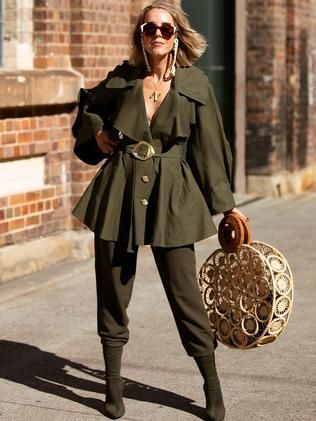 On day three she managed to nab a pair of $5 army pants from a Salvos store in Seven Hills to perfectly match her Aje coat. Picture: Maree Turk/ Nikolina InstagramSource:Supplied | Nikolina is a big advocate for second-hand items and always incorporates at least one piece into her everyday look. Picture: Maree Turk/ Nikolina InstagramSource:Instagram |